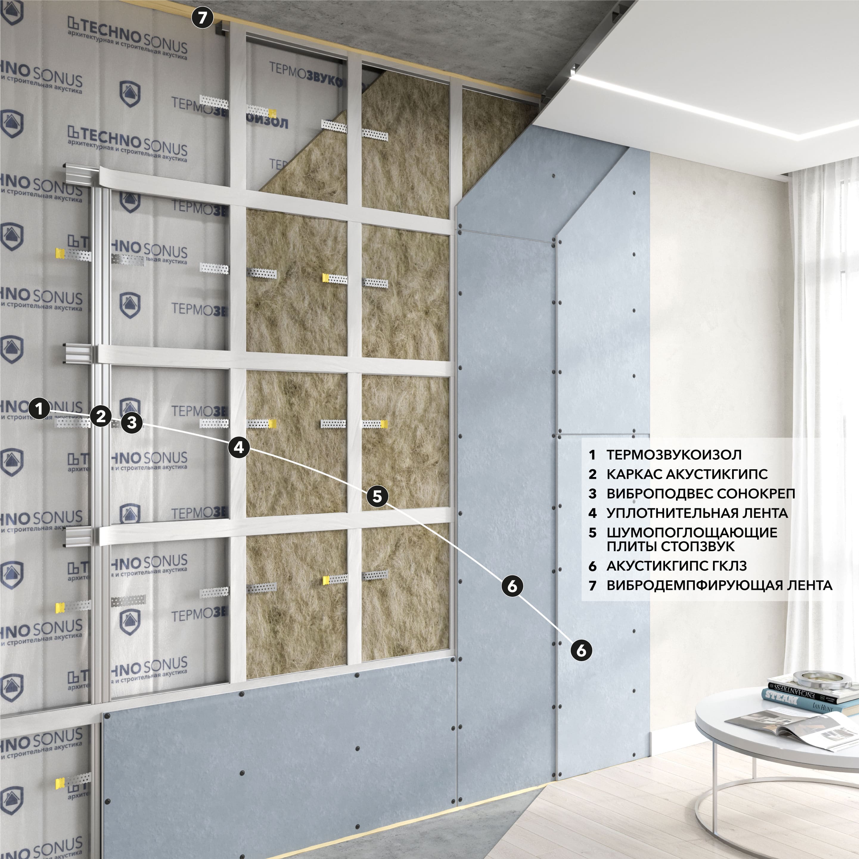 ТермоЗвукоИзол Огнестойкий состоит из иглопробивного калиброванного мата высокой плотности в оболочке из негорючей стеклоткани. Применяется в звукоизоляционных обшивках стен и потолков, в межэтажных деревянных перекрытиях в качестве амортизирующего и шумопоглощающего слоя, для звукоизоляции полов в конструкции «плавающих стяжек», в конструкциях перфорированных потолков для звукопоглощения и коррекции акустики. Также может использоваться в открытом виде в качестве звукопоглощающих «кулис» для улучшения акустики в помещении. Возможно изготовление в белом и черном цвете, с люверсами для крепления в виде занавеса – под заказ. Огнестойкие свойства материала делают возможным его применения на объектах с повышенными требованиями к пожарной безопасности.